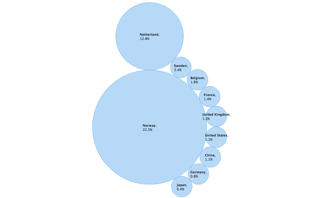 I think this Data visualization put too much information in one chart, and it is difficult to understand the content of the data. In addition, this showed the PEVs' registered number using circle, so it's herd to distinguish quickly where the point is. So if we devide this visualization into two or three chart and use bar chart for showing registered number, it looks better.